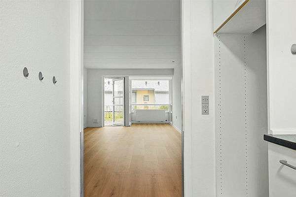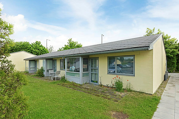 Velbeliggende og godt indrettede 2. værelses rækkehuse på 55.m2 i ét plan. Fra opholdsrummet er der udgang til egen flisebelagt terrasse. Ved hoveddøren findes et skur til opbevaring som hører med til lejemålet.