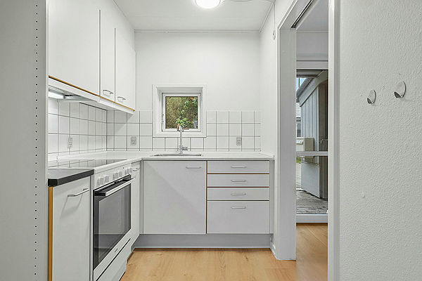 Husene er rummelige og har køkken som ligger i åben forbindelse med stuen. Køkkenerne er holdt i hvide/lyse elementer. På badeværelserne er der plads til at man kan installere sin egen vaskemaskine.