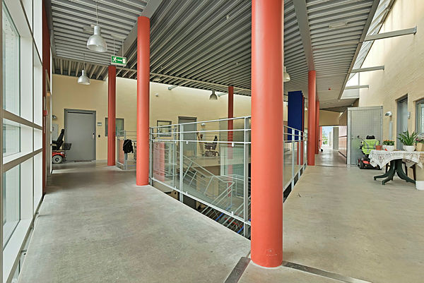 Bebyggelsen består af boliger i 2 to-etagers boliggrupper sammenkædet af en overdækket intern gang. I hver boliggruppe er der en stor elevator til 1. sal.
